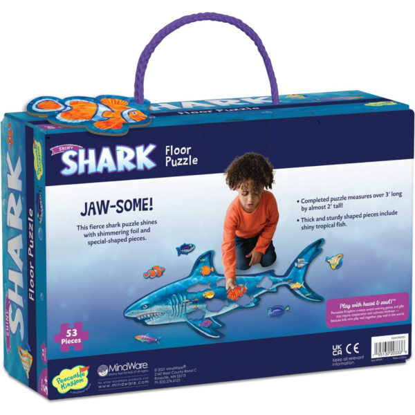 Shark Floor Puzzle features colorful fish friends and thick pieces designed for small hands, enabling easy assembly. At over 3ft (when completed) this shark is sure to take a “bite” out of your child’s boredom.
