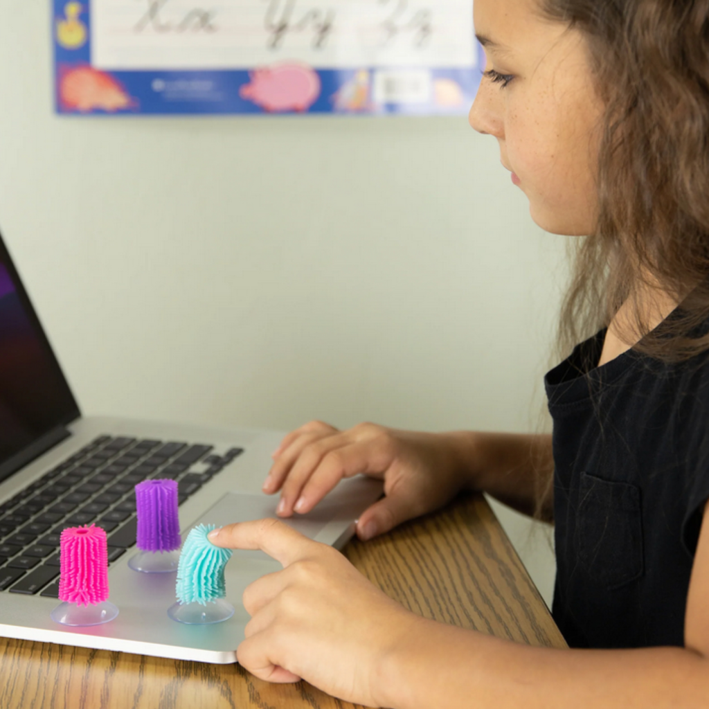 Fidgets come in a wide array of types and different children may prefer different motions or sensory feedback. Some children may prefer quick, repetitive motions like clicking, tapping, or flicking. Others may want to suck or chew while they think. Providing durable, food grade chews (called chewelry) ensures that your child does not accidentally ingest something dangerous while they work.